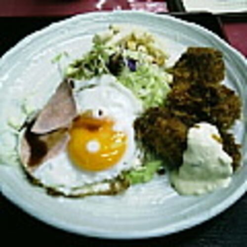 本日の日替カキフライ&ハムエッグ定食780円 カキフライは大きくて良い感じです。ライスは腑抜けた炊き上がり、味噌汁もイマイチで、おかずが美味いのにもったいない(-_-;)常連さんが多いようで混んでいました。