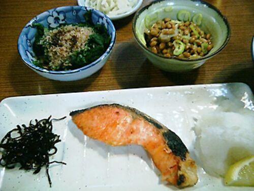 ちょっと寝不足な朝 腕立て200回やって腹ペコ(笑) バイキングはいいねぇ☆ ちょっと食べ過ぎました。連日食べまくりです(^。^ゞ ごはん2杯、味噌汁2杯、サラダ、納豆、とろろ、温泉たまご、スクランブルエッグ、ベーコン、魚、梅干、昆布の佃煮、なめこ…