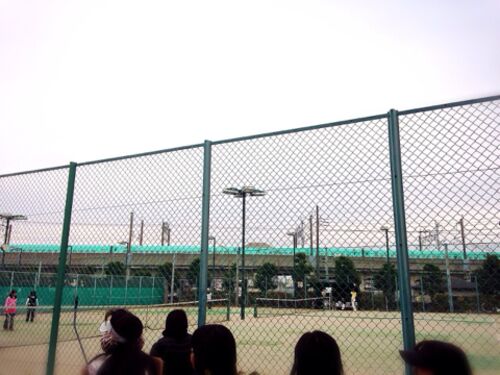 新幹線の見えるコートでシニアダブルスの大会に出場しました。12時集合なので11時半にはコートに着いていましたが、午前中からやっている女子ダブルスが予想通り時間がかかって、自分の初戦は14時半くらいでした。女子は1ポイントの時間のかけ方が違います…