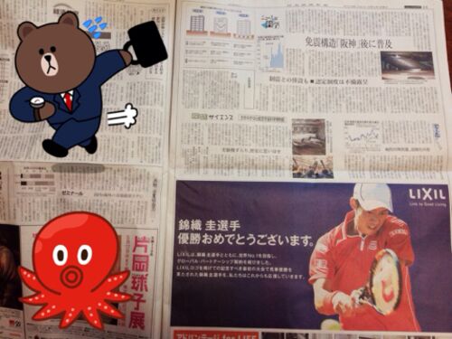 日経朝刊の見出しに「免震」と書かれてて、これは読んでおこうとページを開いた朝食タイム、東洋ゴムの話もあり「ふむふむ、なるほど〜」と読み終え、下段を見たらラケットを振ってる人が載っていました(≧∇≦) あらら、世界の圭さま♪、先に気付かなくて申し…