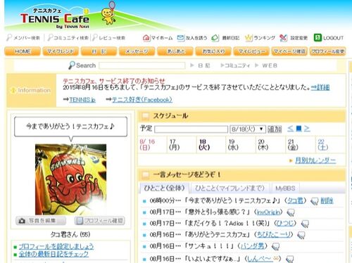 しばらく開いていなかったテニスカフェ(テニスに特化したSNS)、サービスが終了するとの情報を得て覗いてみました。8月16日で終わりと書いてありましたが、現時点ではアクセスできるようで、最後の日記を書いておきました。ここでも様々な出会いがあったの…
