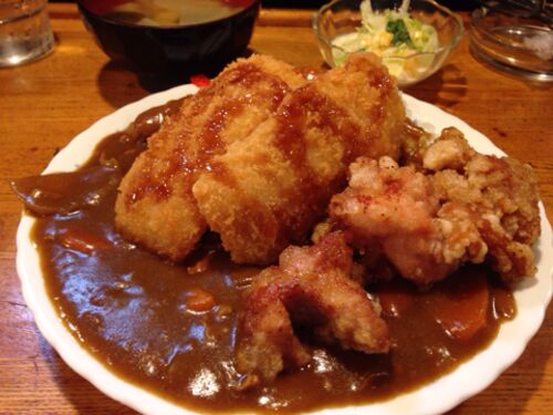 納豆カレーのプランで来たのにイカフライの文字に反応してしまいました。更に本日は唐揚げサービスデーですごいことになってます。このトッピングを片付けないとカレーとライスに辿り着けません。ご飯を少なめにしてもボリューム満点で、気合を入れて完食し…