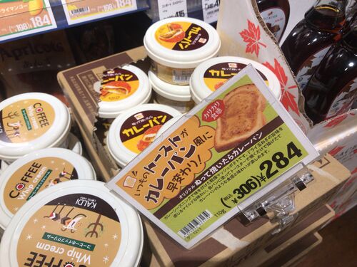 カルディの人気商品、長らく売り切れていましたが、先日お店に行ったら置いてあったので買ってみました。初めてなので、もう少し塗った方がカレー味が強くなったかもしれませんが、カレー味のお菓子みたいにほんのり香るのと、食感はザクッとしてカレーパン…