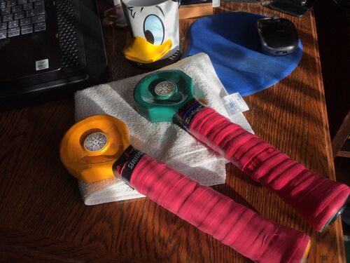 緑が1kg 黄色が550g ダンベルラケットを買ったのはいつ頃だったでしょうか?(少なくとも15年前?) 草トーのカリスマ逆立ちマン氏(仮名)が母校テニス部の部室に転がっていたのを持ち出して「こんなのです素振りしてるんですよ~」と見せびらかされて、メ…