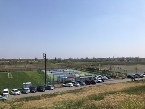 久しぶりに河川敷のテニスコートでダブルスの練習会に参加しました テニスオフで4時間6名の募集を見つけて、のんびりダブルスなら膝も大丈夫かなと思ってエントリーしました。コートに着いてメンバーを見たら、大半は以前に違う方の主催でお世話になった方…