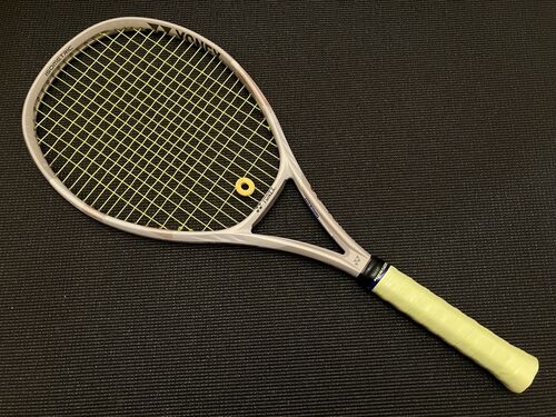 ウインザーでVコア100サンドベージュを買ってきました いま使っているラケットの色違いです。ニューモデルだけど中身は同じだそうです。 ストリングスと振動止めは黄色にしました。グリップテープも同系色で…。サービスガットのポリツアーを45/40で張っても…