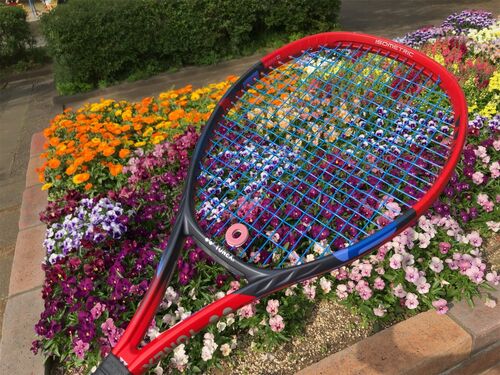 Vコア、最近はサンドベージュを使うことが多いのですが、久しぶりに赤で打ってみました。違いはよくわかりませんでした。ラケットの仕様としては同じだし、ストリングスも同じなので変わらなくて当たり前かもしれませんが、張った時期が1年違うのです(笑…