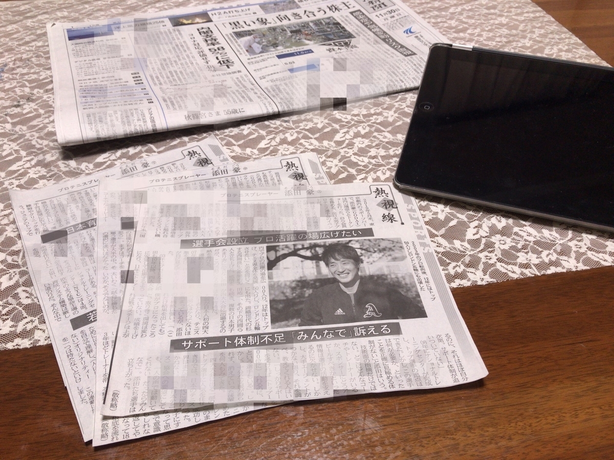 先週、日経新聞に添田豪選手の記事が連載されているとの情報を得て、普段は読まない夕刊を引っ張り出してスクラップしておきました。以下は要約📝