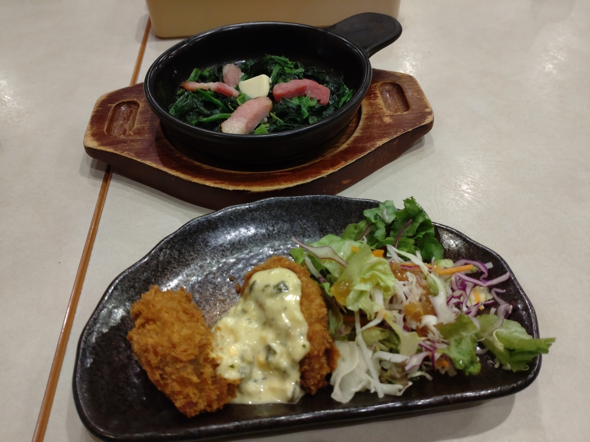 カロママに今日は野菜が足りないと言われていたので補給しましたよ。メニューのカロリーを見ながら2品で400kcalくらいですね。あとはドリンクjバーで野菜ジュースもいただきました。Wi-Fiも完備していて仕事できますね。パソコン持ってこなかったけど(笑)