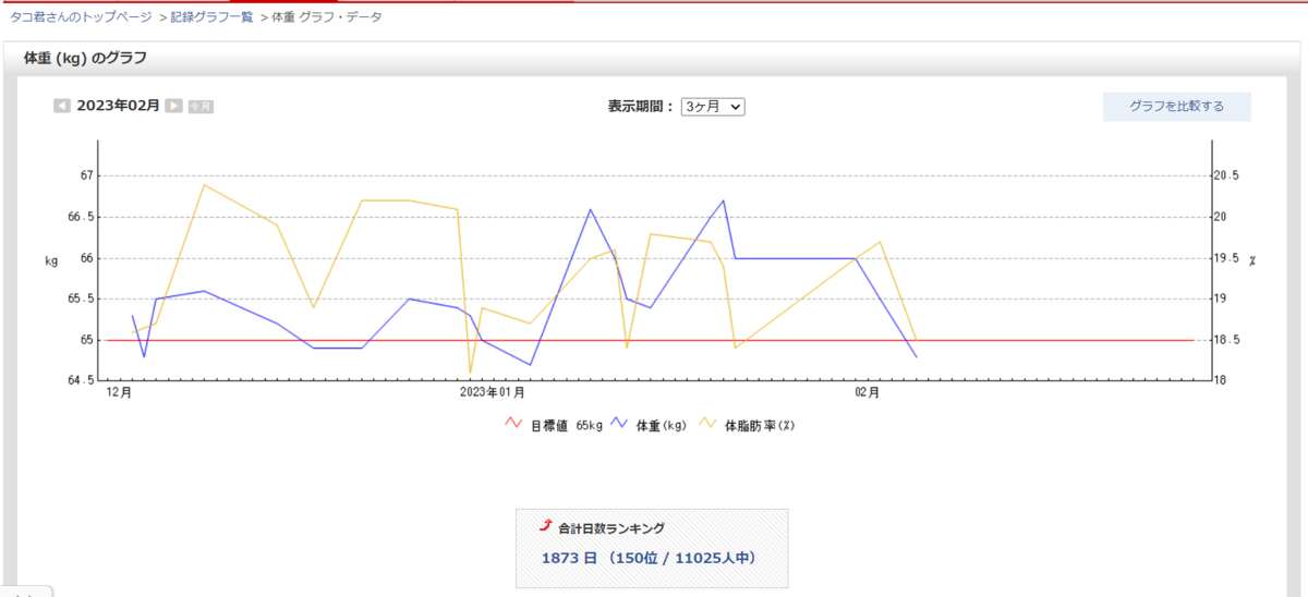 12月は65キロ台が定着して時々64キロ台も出ていたのですが、暴飲暴食の正月明けに66.7までリバウンドしまして、1月後半は通勤でなるべく歩くように頑張ってみましたらようやく64キロ台に(ギリギリ)戻せました。3月の検診でメタボ予備軍を脱却したいので64キロ台定着を目指して頑張りたいと思います。減らすのは時間と手間(運動)がかかるけど、増えるのは一瞬だなと毎度思います。毎晩飲まなければもっと楽に減らせるのでしょうか(笑)