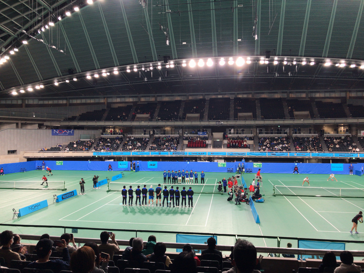 午前中に家の用事をしたり、ランチで少し飲んでしまったりで(笑)、東京体育館に着いた時には各チームがシングルス1の後半くらいになっていました。まあ、予定通りといえば予定通りで、私の観戦目的は勉くんのダブルスがメインでしたので…。