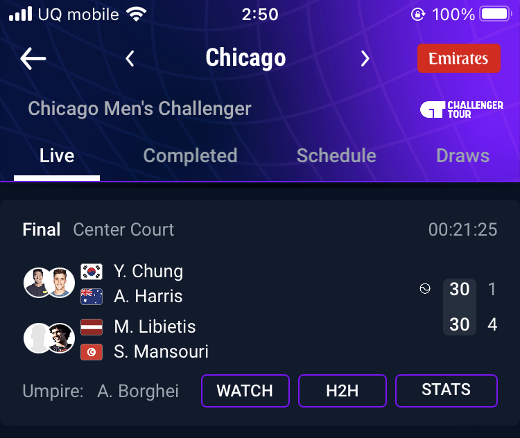 試合の方は、ハラハラするタイブレークを連取して、清水選手が決勝に進みました。相手は203cm、身長差が40cmのクレバーな戦いぶりをご覧ください(下記リンクにて)